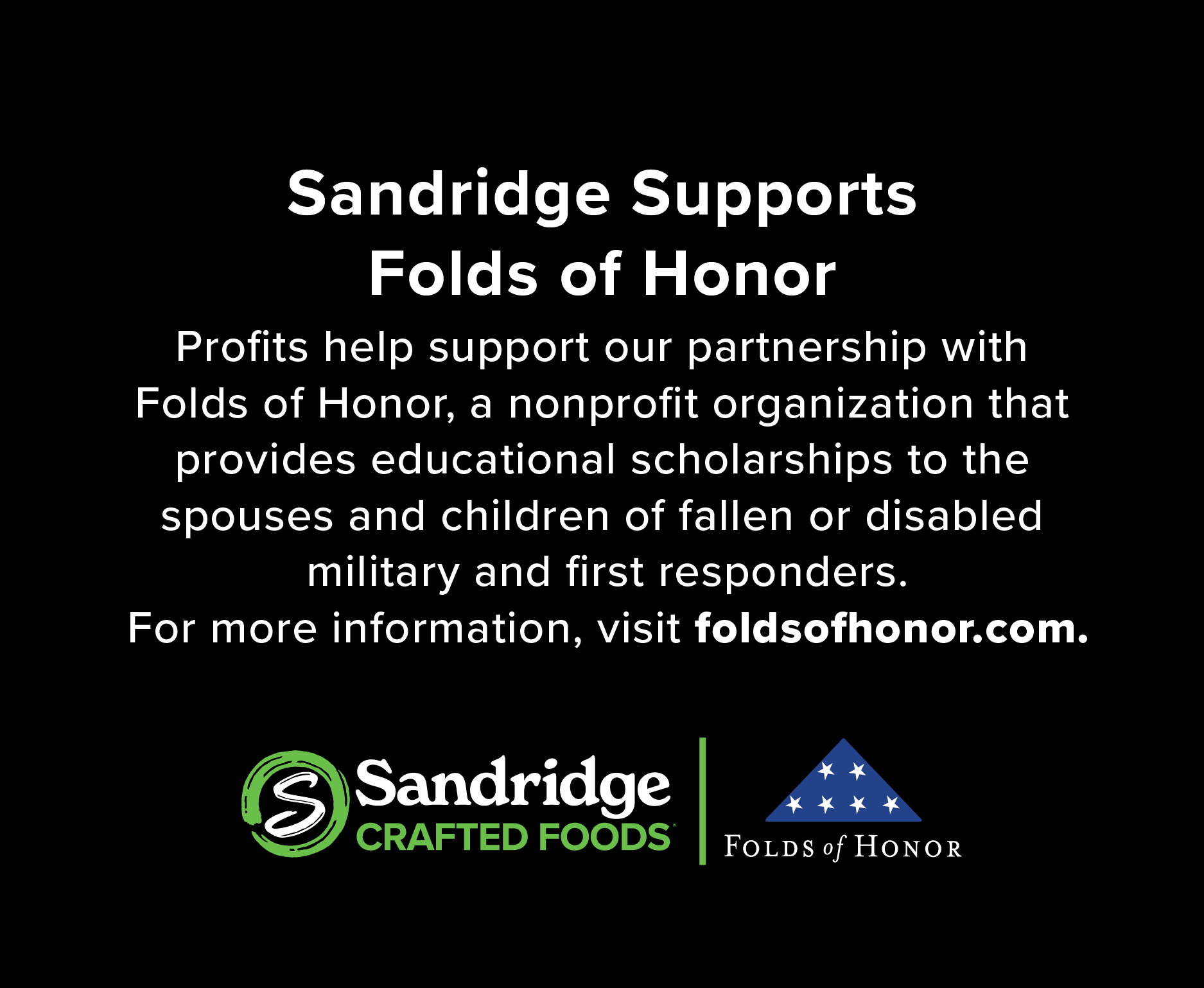 Bringing a mission-driven brand to life in partnership with Sandridge Crafted Foods and Folds of Honor.